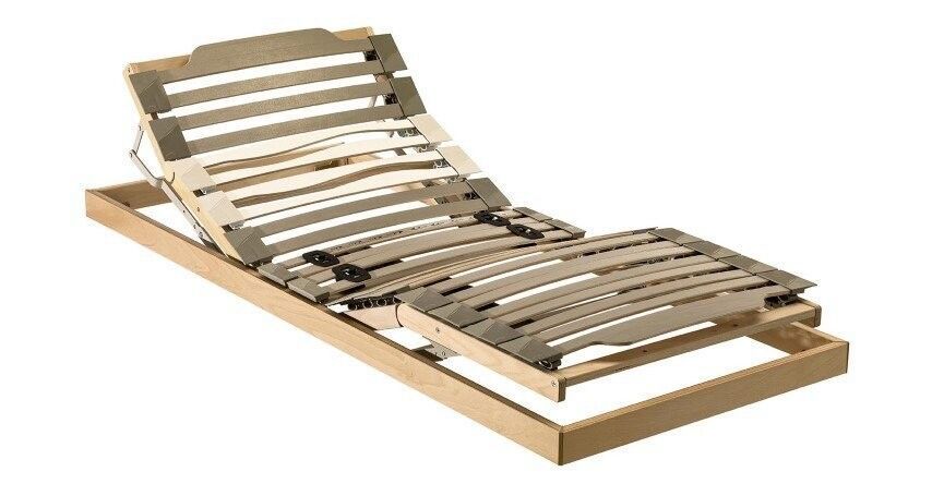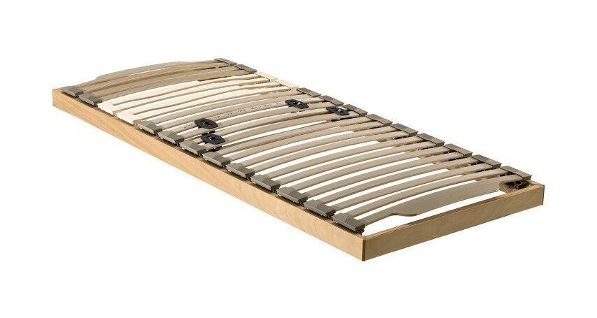 Struttura ortopedica con tubolare mm 40x30x1,5 verniciato con polveri epossidiche con 7 listelli in legno di Faggio da 170 mm verniciato ad innesto in una seconda canalina appositamente creata per mantenere integro il telaio perimetrale principale, rinforzato con 2 barre verticali dove poggiano le doghe.